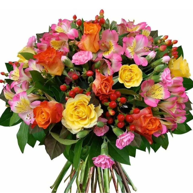 Альстромерия, Гвоздика, Гиперикум, Роза |
