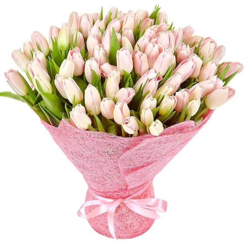 Букет состоит из 101 розовый тюльпан, красивая упаковка, атласная лента.