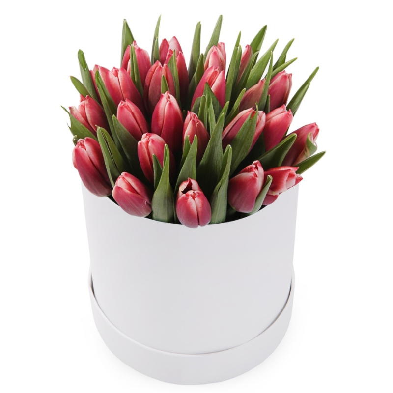 Букет из 25 красных тюльпанов в коробке