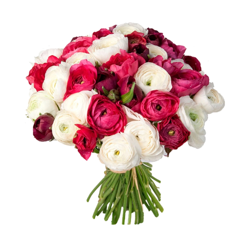 Букет состоит из MIX из 35 красных и белых ранункулюсов, лента.