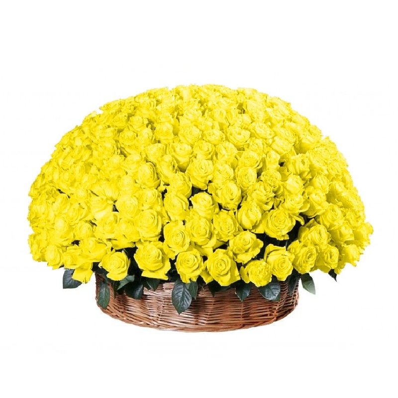 Букет состоит из 201 желтая роза, зелень, корзина, оазис.
