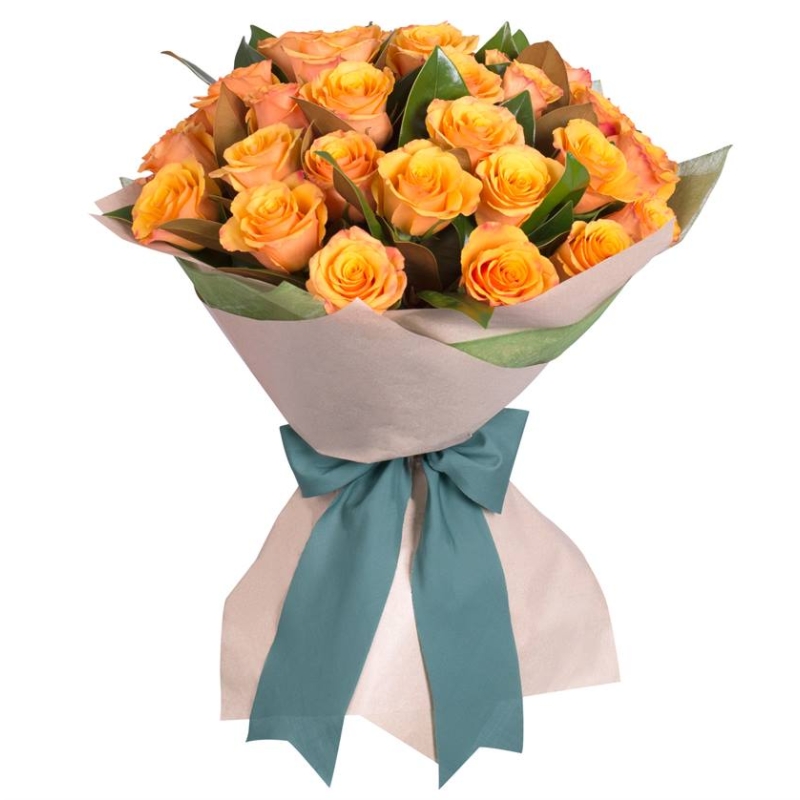 Букет состоит из 35 оранжевых роз, красивая упаковка, атласная лента.