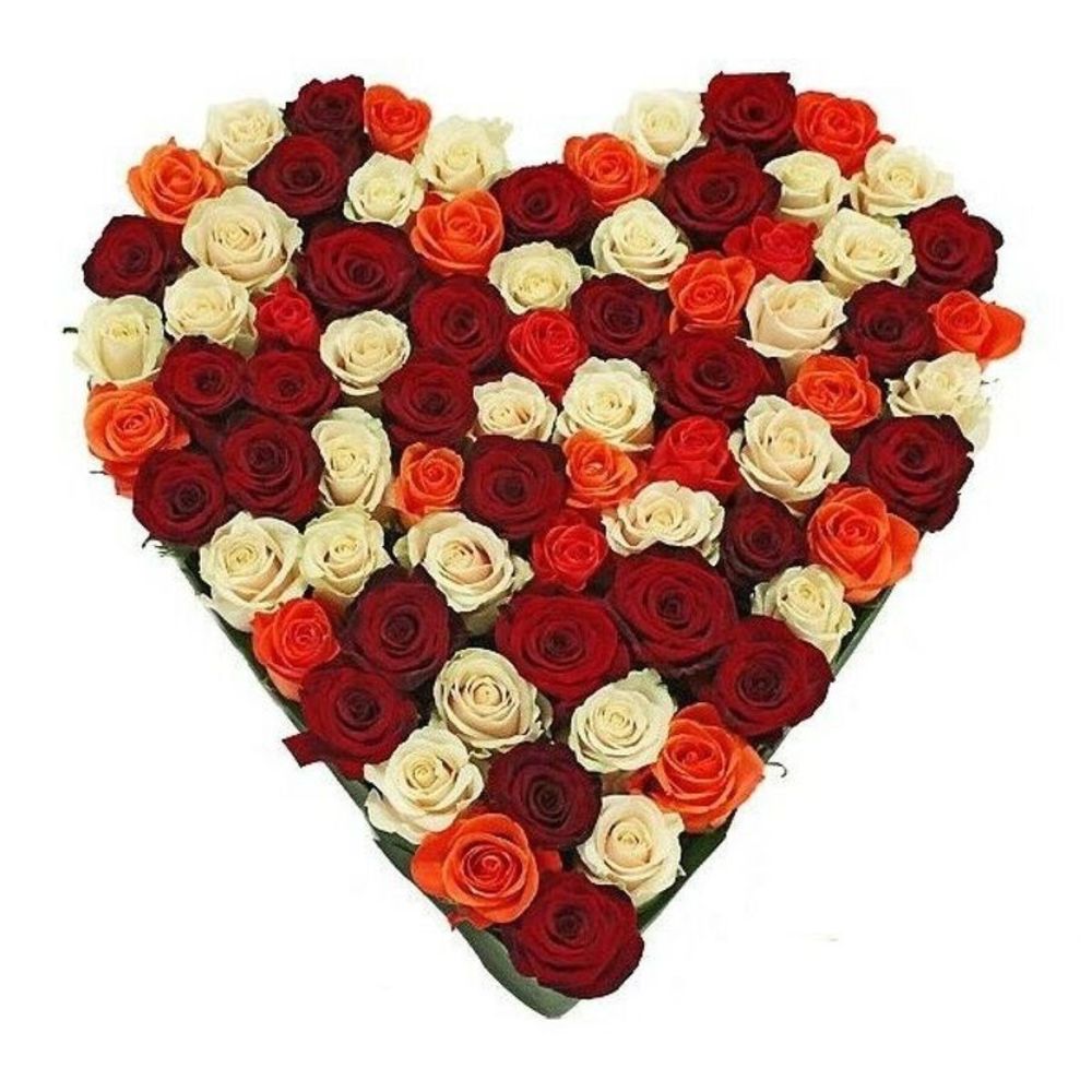Композиция MIX из красных / белых и оранжевых роз, оазис.