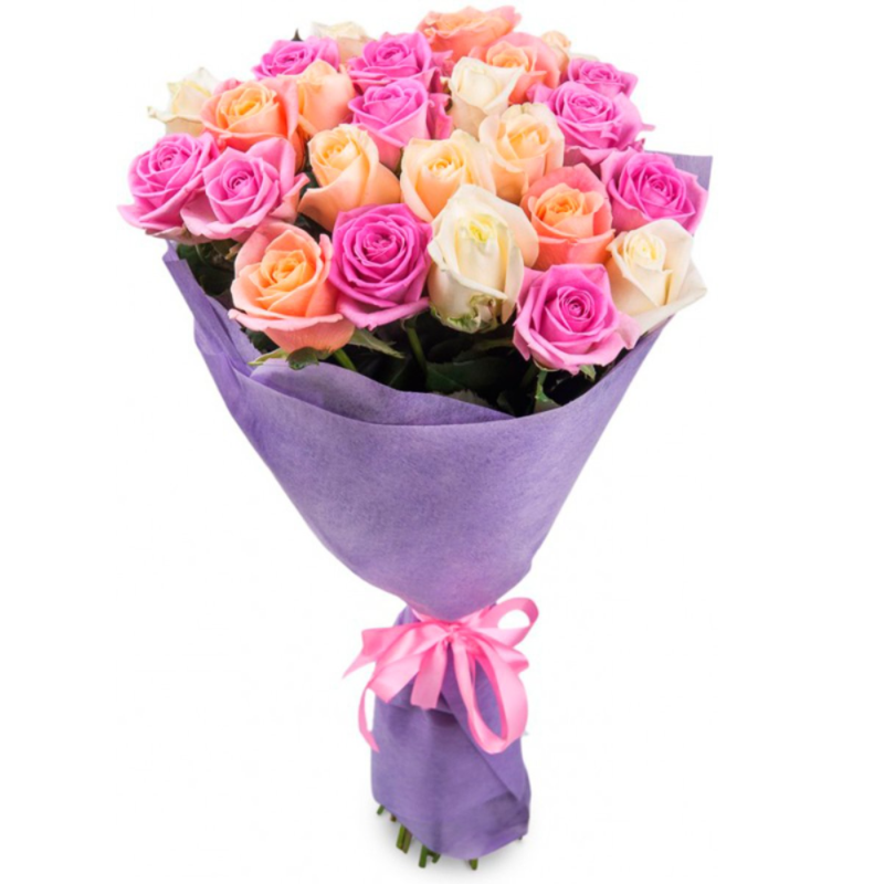 Букет состоит из MIX из 21 розы, красивая упаковка, атласная лента.